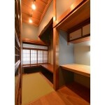 明かり書院と床の間部分には、掘り込み座卓のカウンターを新たに設け、趣味の空間としました。一方、床脇は天袋を生かしながらパソコン作業ができる椅子座用のカウンターを設け、リモートワーク等仕事のための空間を備えました。