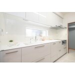 システムキッチンは、TOTOショールームで見たような雰囲気が良いとのご要望でしたので、床をフローリングから大理石調のフロアタイルを提案し、高級感のある空間を実現しました。 また、壁紙や面材などは、ご家族が納得し気持ちよく過ごすことができるよう一緒に考え、検討して決めていただきました。