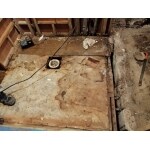 浴室の入り口の段差も今回のリフォームでかなり低くなり入りやすくなりました。 洗面所の内装も破損個所を補修しながら一新した仕上がりに喜んでいただきました。