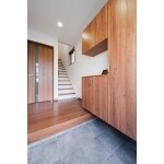 小さなお子様が生活する2階の床は、無垢フローリングをご提案。2階のリビングダイニングの天井は勾配を活かし、ダイナミックかつ居心地の良い空間に仕上がりました。