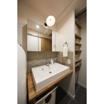 隣接していた洋室の一部を洗面脱衣所に拡張し、悩まれていた収納スペースも可動棚を設けたことで解決。 大人シックな雰囲気のお洒落な洗面スペースが完成しました。