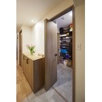 玄関横に隣接していた洋室を取り込み、入口から回遊できるようシューズインクローゼット、ウォークインクローゼットをプランしました。 持て余していた部屋を大容量のメイン収納にリフォームしたことで、空間を十分に活用した玄関スペースが仕上がりました。