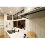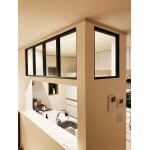 トレンドの室内窓で明るく広がりのあるキッチンに。