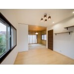 洋室だった空間をLDKとし、大開口の間仕切りを採用することにより和室と一体となってひろく使用できるよう工夫しました。また料理好きのご夫婦に機能的でスタイリッシュなキッチンのご提案と小さいお子様のために体にやさしい自然素材、無垢の床材やオリジナルしっくいのご提案をしています。お庭については駐車場からのアプローチを設け子供たちが遊びやすいよう見通しのよいよう整備しました。