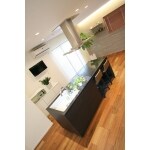 大人が集う、スタイリッシュなデザインのキッチンで、家族揃って団欒の一時を過ごしています。