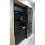 以前は2LDKで寝室とリビングが引き戸で仕切られていましたが、間仕切りを取り払い1LDKへ。エアコンは壁掛けを天井カセットエアコン1台にまとめています。床はフローリングからタイル張りに変更。玄関土間~廊下~リビング寝室~キッチン、洗面トイレと連続して同じタイル張りとしました。また玄関廊下からリビングの壁面は連続して同じエコカラットを張り、一体感と高級感が感じられます。お部屋のレイアウトはほぼ同じですがまるで別空間のような雰囲気になりました。収納量アップ、床暖房をガス式にし暖房効率アップなど性能も向上さています。