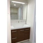 収納力のあるすっきりとした洗面