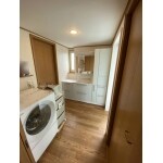 清潔感のある白が基調の新しい洗面化粧台。明るくすっきりとした印象の洗面所になりました。