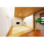 今回のフルリノベーションを機に、元々段差がある水廻りだった箇所をリビングに繋がる小上がりの和室へとリフォームしました。 畳は撥水性や耐久性があるDAIKEN「健やかおもて」をお選びいただきました。自然素材の和紙からできているこちらの優れた畳は、小さなお子様がいる娘様ご家族もお手入れなど気兼ねなくご使用できる製品です。 また床の間にはアーチ型の垂れ壁を設け、間接照明や格子もこだわり高級感のある素敵な印象に。 スタイリッシュなリビングダイニングに溶け込むお洒落な和室空間に仕上がりました。