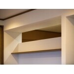 集中できる個室は、マンションですが、風通しをよくするため開口を設けました。 収納はしまう収納とみせる収納棚を分けて提案しました