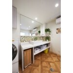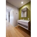 築30年、戸建のお住まいの全面改装を承りました。 毎朝身支度をする洗面台は元気が出る明るい印象にしたいとのご要望でした。
