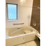 お掃除しやすく汚れにくい、木目調のアクセントパネルがとても素敵なユニットバスへ。