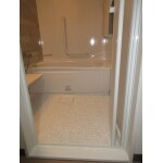 マンションでも一般住宅用のシステムバスを選択し、出来る限り入口の段差を無くして施工しました。