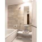 T社のマンションリモデルWYシリーズ Kタイプを設置いたしました。 アクセントには「パティオベージュ」を採用。お洒落な浴室空間に仕上がりました。また清掃性も抜群。特に床は皮脂汚れが流れやすく、乾きやすくなるように設計されている為、汚れやカビが出にくいです。