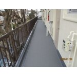 通路の防水工事を施工したうえで、シートを全面に施工させていただきました。雨がふっても滑りにくく美観性も向上しました。