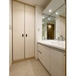 通常のW900やW1000の洗面化粧台を設置すると隙間ができてしまったりフィラー納まりになるところですが、リジャストなら間口1センチ刻みで発注できるので、現場のサイズに合わせてぴったりのサイズで注文できます。 カウンター下収納もW1000の化粧台を設置するよりも、8センチ分大きくできました。 リジャストならミラーも間口ピッタリにできますが、今回ミラーは既存をそのまま利用し、洗面室のクッションフロアは新しくしました。