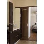 リビングダイニングと主寝室と出入口を2ヵ所設けることで、生活動線、家事動線が良くなりました。洗面台の両側にトールキャビネットを設けましたので、収納力も充分です。