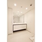 温かみと高級感が広がる空間になるよう、光沢とマーブル柄が上品なベージュの大理石調大判タイルを玄関・廊下・LDKに貼りました。 またリビングドアはガラス扉をご希望でしたので、サンワカンパニーのクアドロスリム親子ドアをご提案しました。 ブラックフレームがホワイトベースの空間に良いアクセントとして存在感を出しています。 白を基調色とし、奥様のお好みのホテルライクを意識して内装材をご提案いたしました。