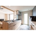 和室部分にキッチンを配置し、もとのキッチンの場所に洗面やランドリールームを設けてゆったりと家事のしやすい開放的な空間にしています。