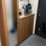・玄関収納の扉を外して、既設のシートと同じようなお色や柄のシートで張り直しをする。 ・鏡を交換する。 以上ご提案させていただきました。
