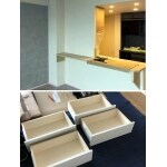 既製品のカウンター材では加工が難しい為、製作図を作成し承認を頂く事、引出し部分は家具業者に依頼することを提案しました。