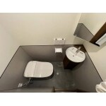 バーのトイレとして使用するとのことでしたので、腰から下にパネルを施工し、汚れがついてしまった場合も簡単に掃除ができる仕様を提案させていただきました。 狭い空間の中でも手洗い器・鏡の設置を希望されていたため、空間に合わせたサイズの商品をご提案させていただきました。