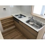 シンクを少し大きめの設定にして、ワークスペースが減ってしまう分、専用のシンク用カゴを設置しました。収納は全て引出しとして収納力も上げました。