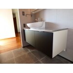 洗面化粧台をスタイリッシュかつ幅の広いタイプに。 カウンタースペースも広くなったので、作業も効率的に行えるようになっています。