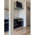 以前のキッチンは2階にキッチンがございました。移住するにあたり今後の生活スタイルを考慮し1階にキッチンを移動するご提案をさせていただきました。 玄関でした場所にキッチンを移動し耐震補強をしっかりと行い1階に水廻りをまとめ住みやすさを考慮。 耐力梁や構造上抜けない柱を残しながらもデザインとして活かしたキッチンプランとなっております。 作業スペースが取りづらく、収納スペースも少なくお困りでしたのでシンプルなデザインで収納力もありお手入れしやすいPanasoniの「Vスタイルキッチン」をご提案させていただきました。 耐熱、耐久性に優れた不燃化粧板を壁面へ施工し、耐水集成タイプのPanasonicの「インテリアカウンター」を付けることでおしゃれに収納もできます。