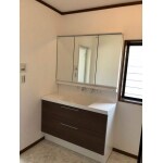 3面鏡で隠す収納にしたことで、空間を上手く使うことができました。また、洗面台の大きさもアップしているので収納スペースも大きくなっています。