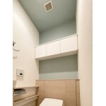 TOTO レストパルL型Sサイズ スリム収納タイプにお取替え。ウォシュレットはアプリコットF1Aタイプです。 便器はホワイト、背面の収納部分やカウンターはライトウッドというお色をお選び頂きました。 合わせて天井・壁のクロスと床のクッションフロアも新しくしました。