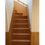 階段の他、LDK・玄関・廊下といった主要箇所を施工。耐久性と価格とのベストコストパフォーマンスを探り、フロアタイル&見切りにて壁面ボードを作成。飼い主様にも猫ちゃんにも、優しい仕様となりました。