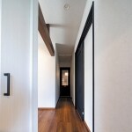 抜けない梁は、LDKと同色のダークブラウンで塗装して、統一感を与えます。廊下にも、受け継いだ平屋の面影を残しました。 ご要望のあった土間収納を造るために、玄関・廊下が広くなり、廊下の奥行きを感じさせます。 旦那様が可愛がっている金魚の水槽を置いても十分な広さで、来客の目を楽しませてくれるそう。 また床材をバリアフリーにすることで、ロボット掃除機が通れるようになっただけでなく、将来的にも長く安心して暮らせます。 前からあった廊下の物入を2箇所に分けて、それぞれの場所で収納でき利便性が上がりました。
