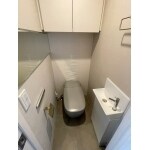 LIXIL サティスリトイレGタイプ GR5グレードにお取替え。色はどんなインテリアとも調和するマットなノーブルグレー。ナチュラルな空間や洗練された空間にもおすすめな色味です。 背面の壁にはエコカラット(グラナスラシャ)を施工しました。布を張ったようなしなやかなレリーフが特長です。