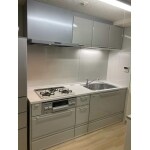 | その他採用機器・設備 | 寸法:W2100 H850 D650 ワークトップ:シャイングレー(人造大理石) シンク:Zシンク 面材:ライトグレー パネル:マーブルグレー(ホーローパネル) |