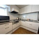 築28年のマンションのキッチンリフォーム。 既存のL型キッチンは1650(ガス側)、1500(シンク側)と小さく、とても使いづらく、物がうまく収納できない。使いやすいキッチンにされたいとご相談頂きました。