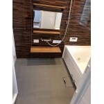 商品はお客様がショールームで見て決めてくださったこだわりの仕様! 浴室は温かみのある落ち着いた雰囲気の茶色ベースに仕上がりました。また、お風呂のドア付近の床が腐食していましたので補修して安心して利用できるように工夫をしました。 脱衣所は、化粧台と床の組み合わせがとても合っていて、おしゃれな印象になりました。