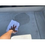 汚れはしっかり取り除く必要がありますね。FRP防水層は問題なさそうです。汚れをしっかりと取るためにケレンを丁寧に行ってから脱脂のためのアセトン拭き上げは欠かせない工程です。