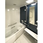 1坪サイズに大きく拡張。 高級感漂う青藍のアクセントパネルがまるでホテルライクな空間に。 広くて快適な入浴が楽しめる浴室になりました。