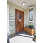 玄関ドアを交換しました。お住まい内・外観のナチュラルなテイストにピッタリのデザインをご提案。濃い木目の扉とアイアンの飾りが、明るい色合いの外壁のアクセントになっています。小さなガラスの小窓から玄関内に光が入ります。