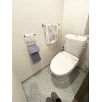 爽やかなタイル柄の床が映えるトイレになりました!