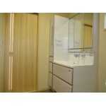 玄関近くのトイレ前の手洗い場、帰って来てすぐに手が洗えます。