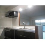 和室を取り払い、リビング・ダイニングにしました。 閉鎖的だったキッチンも広くして開放感のある明るいキッチンとなりました。 床暖房は遠赤外線効果のあるヒートプラス 床材はわんちゃんの足腰にやさしいワンラブフロアを採用しました。