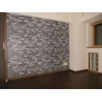 落ち着いた色合いの床材に張替え 一面アクセントにレンガ調の壁紙を持ってきました。
