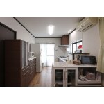 キッチンとお揃いのカップボードを設置して、まとまりのある空間となりました。