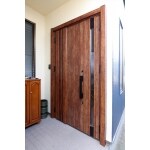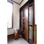 断熱タイプの玄関ドアに交換しました。袖部分の採風窓で玄関光と風を取り込むことができます。