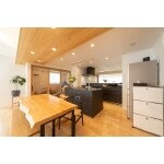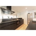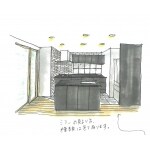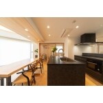 キッチンの向きを変え、リビングを広く魅せる工夫をしましょう。キッチンは思い切ってブラック1色にし、高級感を出しましょう。