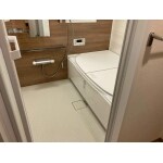 一面のみ木目調のパネルを採用されたことで、かわいらしい、暖かみのある浴室になりました。