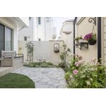 生垣は撤去し、フェンスを設置。ガーデニングがお好きとのことでしたので、土の部分は残しつつ床面は石張りと人工芝に。アプローチからお庭まで白いフェンスが続くので、広さを感じ、自然とお庭へ足が向かいます。