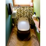 ショールームで実感していただくことをお勧め致しました。 清掃性の高いタンクレスをご提案致しました。